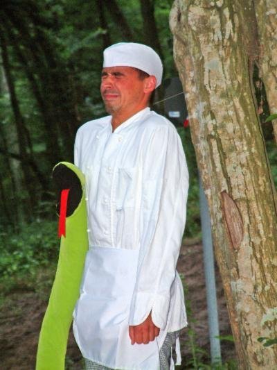 Langsam kroch die Schlange an seinem Leib hinauf und der Bäckerbursche hielt tapfer durch. Immer weiter kroch die Schlange...