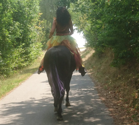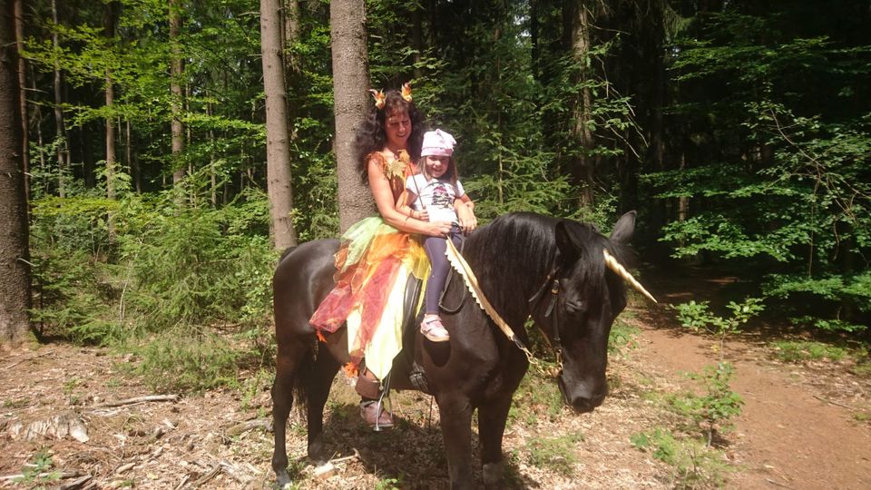 Ihre Mutter erklärte weiter: „Einhörner sind Fabelwesen mein Schatz. Genau wie Trolle und Elfen. Es gibt viele Geschichten über sie aber niemand hat je ein Fabelwesen gesehen - bis gestern. Der Jäger sagte, er habe eines gesehen. Hier bei uns in den Wäldern. Direkt im Wald hinter dem Reitplatz. Es ist ein schwarzes Einhorn. Es streift hier gemeinsam mit der Waldfee und hilft ihr bei der Suche nach Feenstaub. Denn mit Feenstaub kann man zaubern.“