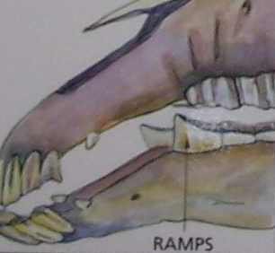 Die Zahnkanten und zu lange Zähne wurden gekürzt bei Belassung der natürlichen Welle. Die Kauflächen werden eher abgeflacht, wobei bei Phoenix am 1. und 4. Backenzahn an den Rampen deutlich abgetragen wurde. Ober- und Unterkiefer wurden einander angepasst.
